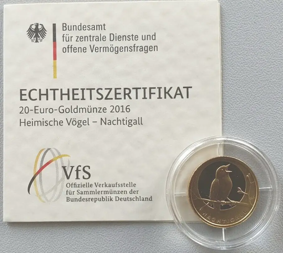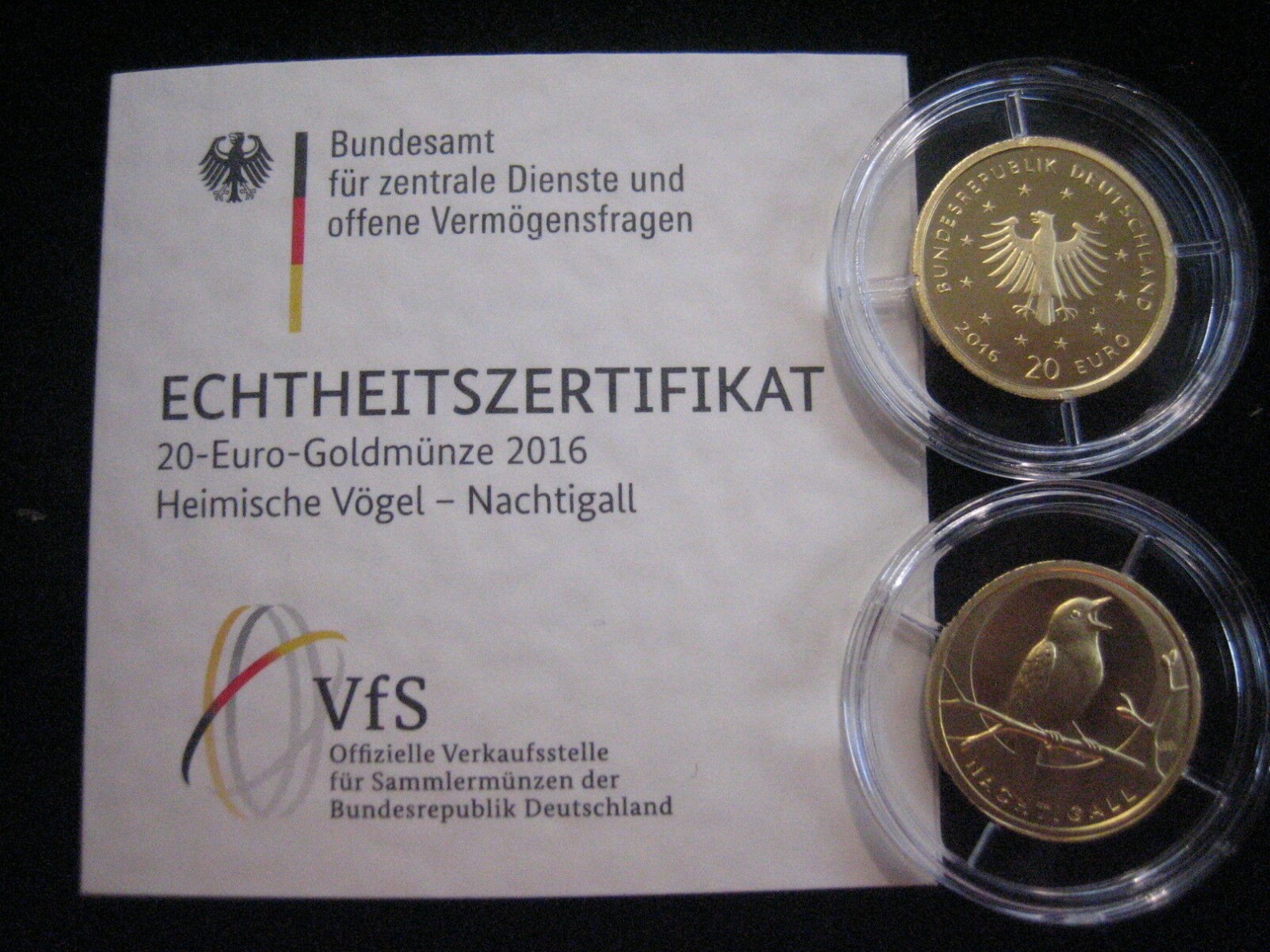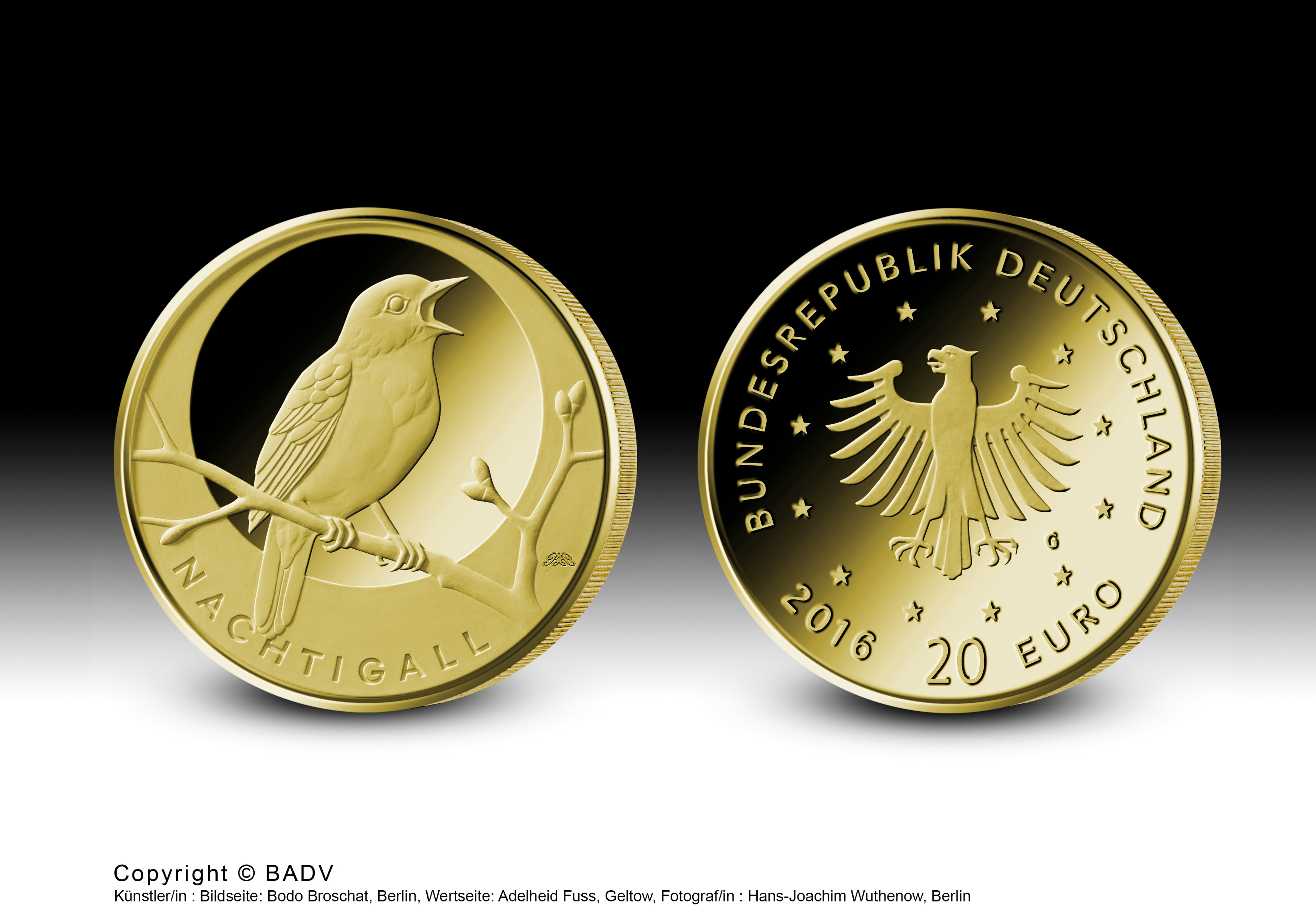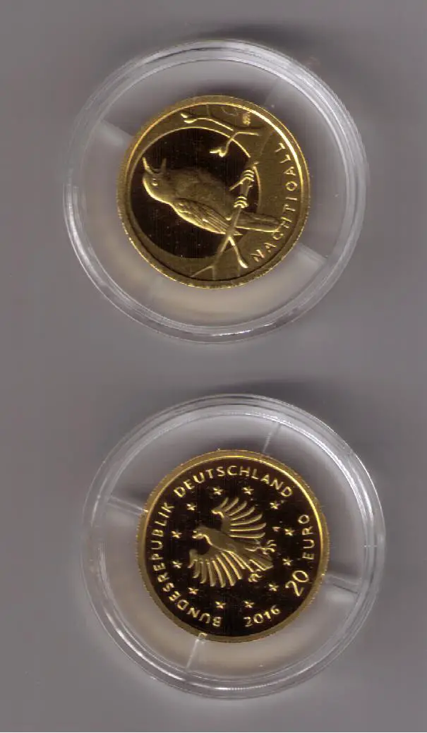 Deutschland 20 Euro Goldmünze Heimische Vögel - Motiv 1 - Nachtigall - J (Hamburg) 2016
